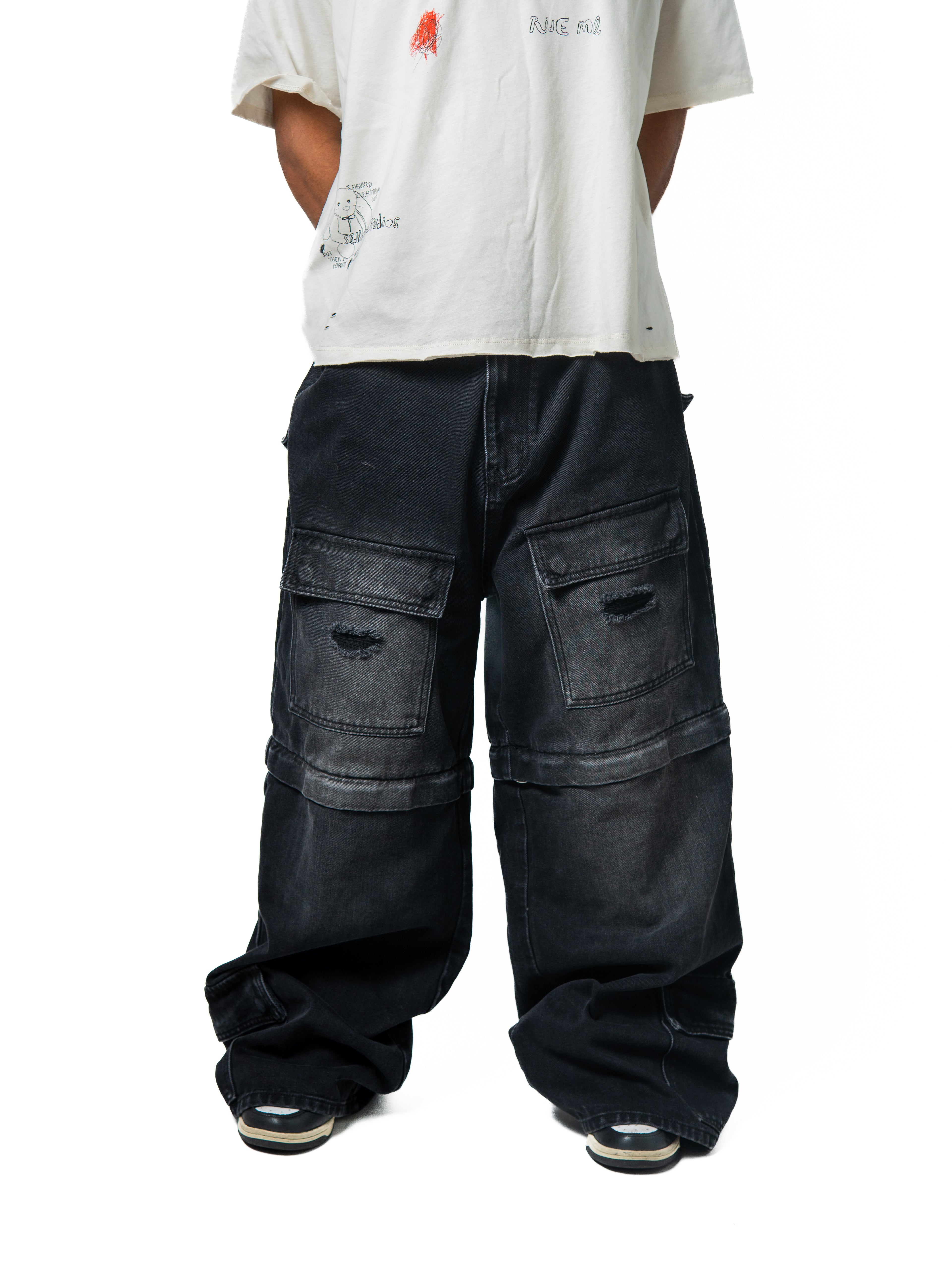 CONVERTIBLE CARGO PANTS 'BLACK'